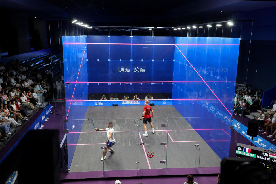 8月12日,法国选手克鲁安(左)在比赛中回球。新华社记者 邬惠我 摄