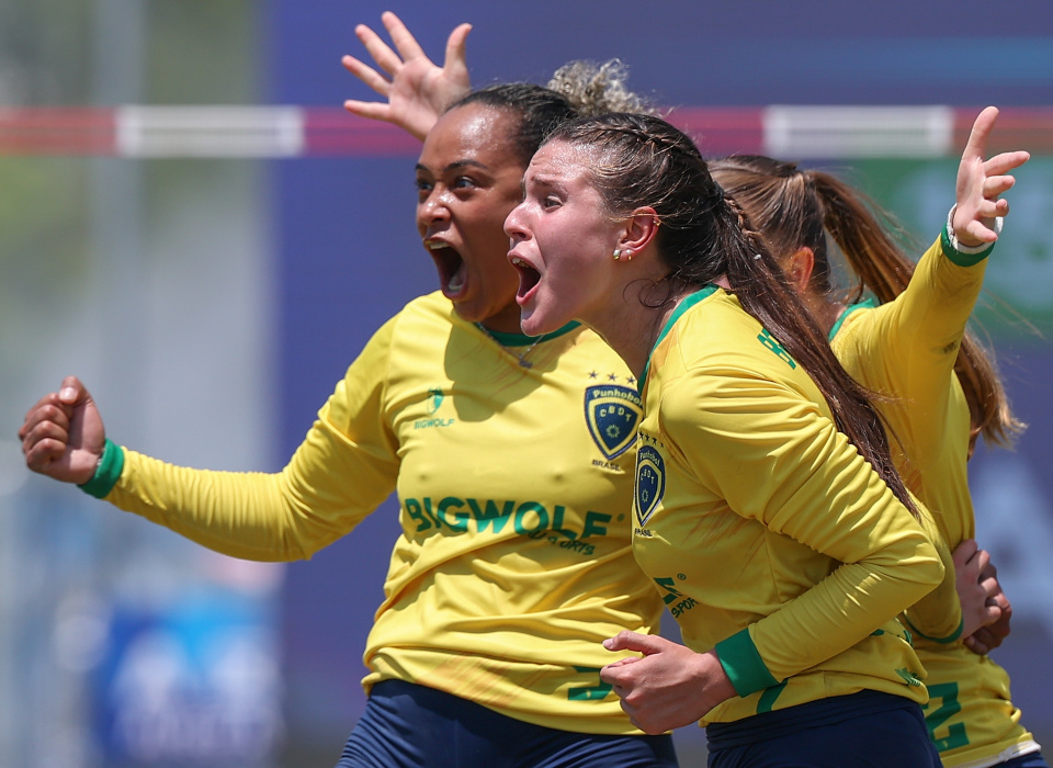 8月12日,巴西队球员在比赛中庆祝得分。新华社记者 陈诚 摄