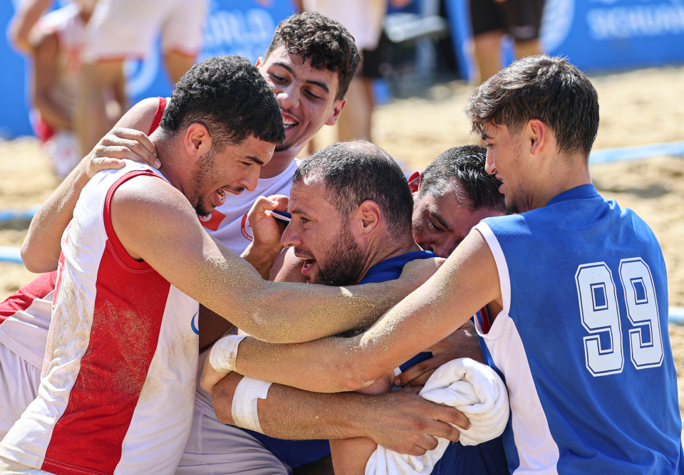 8月12日,突尼斯队球员庆祝获胜。新华社记者 刘坤 摄